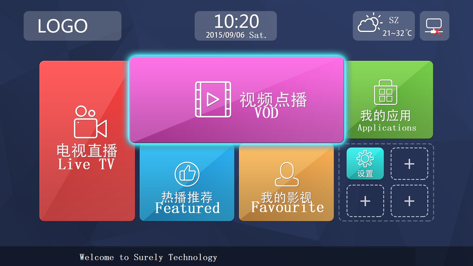 This simple system supports live TV, VOD, Time-shift TV, and playback TV. It can supports 7 days time-shift, and 7 days playback. We combine the 3rd charge free video apk inside.
