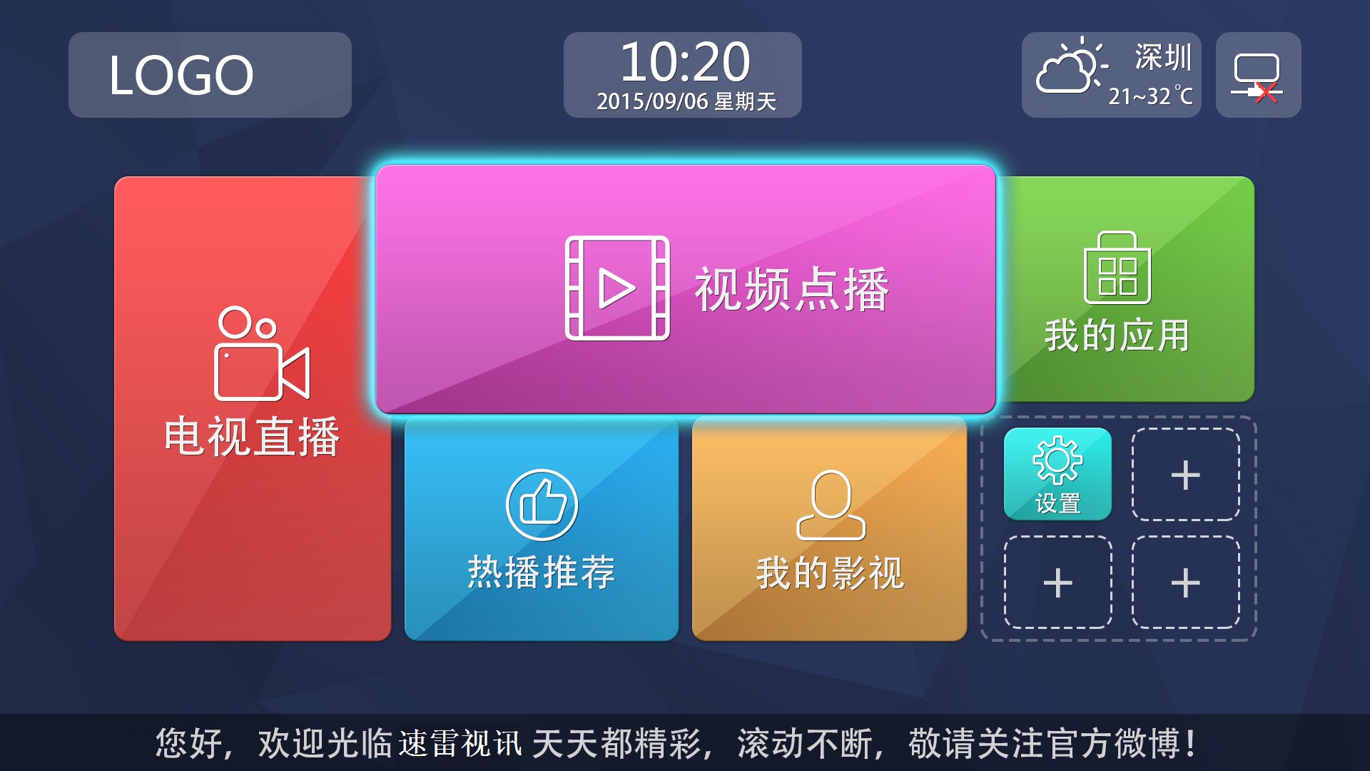 我们的系统支持直播、点播、回看和时移,可以支持7天的回看和7天的时移,频道数不限制。系统也支持高清和4K,根据前端所用的编码器和机顶盒来决定。在我们的主页里也支持第三方视频apk。